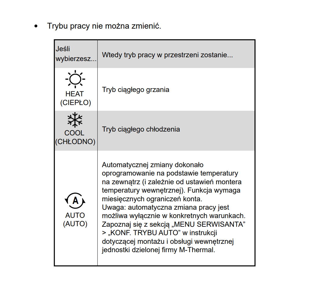 Zmiana trybu pracy: grzanie, chłodzenie, AUTO