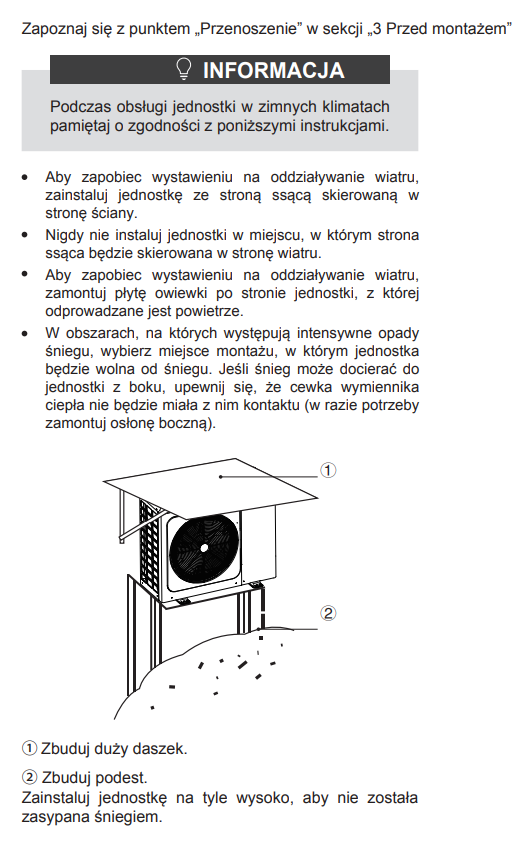 Podczas pracy w trybie grzania z jednostki zewnętrznej odprowadzane są skropliny. Instrukcja zaleca: