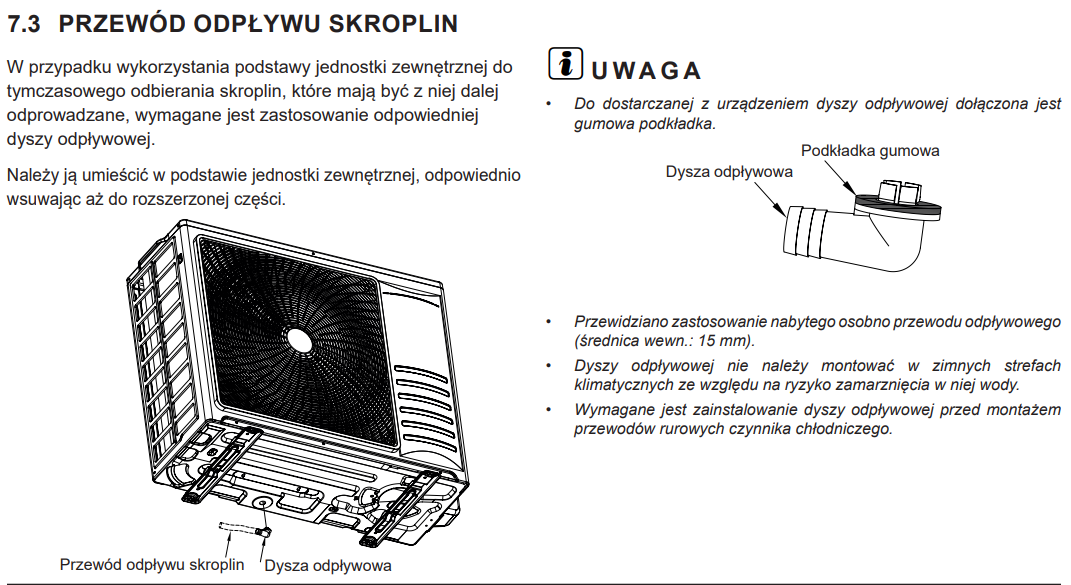 - Odpływ skroplin z jednostki zewnętrznej