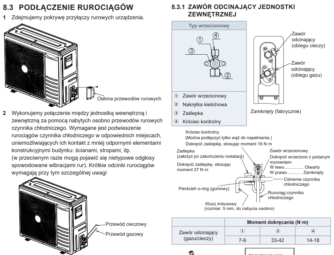 Prowadzenie i podłączenie rur czynnika chłodniczego