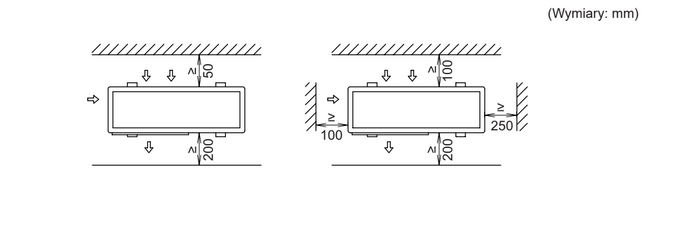- z przodu, przed wylotem powietrza – minimum ok. 1 m wolnej przestrzeni,